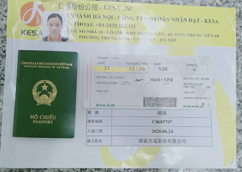 Hôm nay 24/06/2020 chuyến bay mang số hiệu BR0398 của hãng hàng không EVA sẽ cất cánh vào lúc 12h từ sân bay Nội Bài đến sân bay Đào Viên-Đài Bắc-Đài Loan và những bạn công nhân Quần Sáng đầu tiên sẽ đặt chân lên đất nước Đài Loan vào chiều nay.