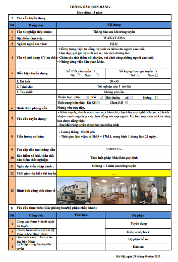 - Địa điểm làm việc: Tỉnh WAKAYAMA