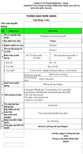 - Địa điểm làm việc: Tỉnh Tokyo