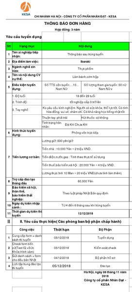 - Địa điểm làm việc: Tỉnh Ibaraki