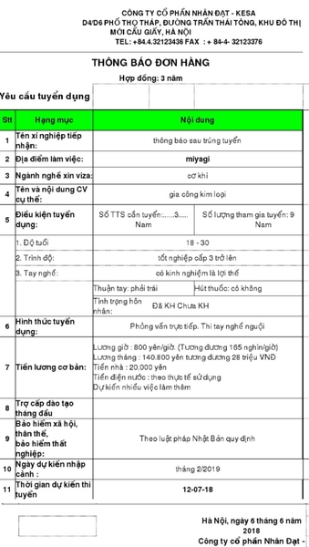 - Địa điểm làm việc : Tỉnh MIYAGI