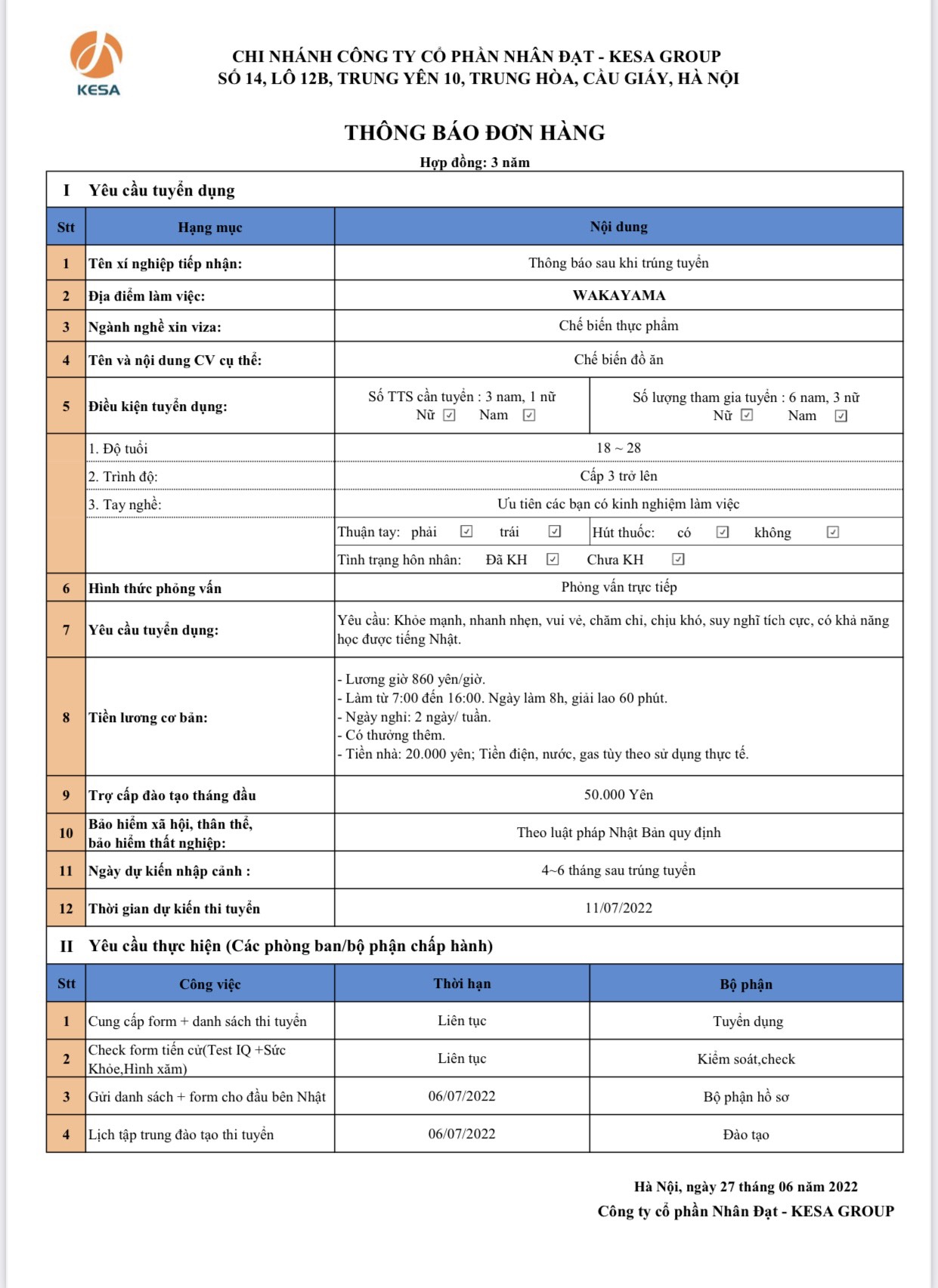 TUYỂN 1 NỮ & 3 NAM - CHẾ BIẾN THỰC PHẨM
