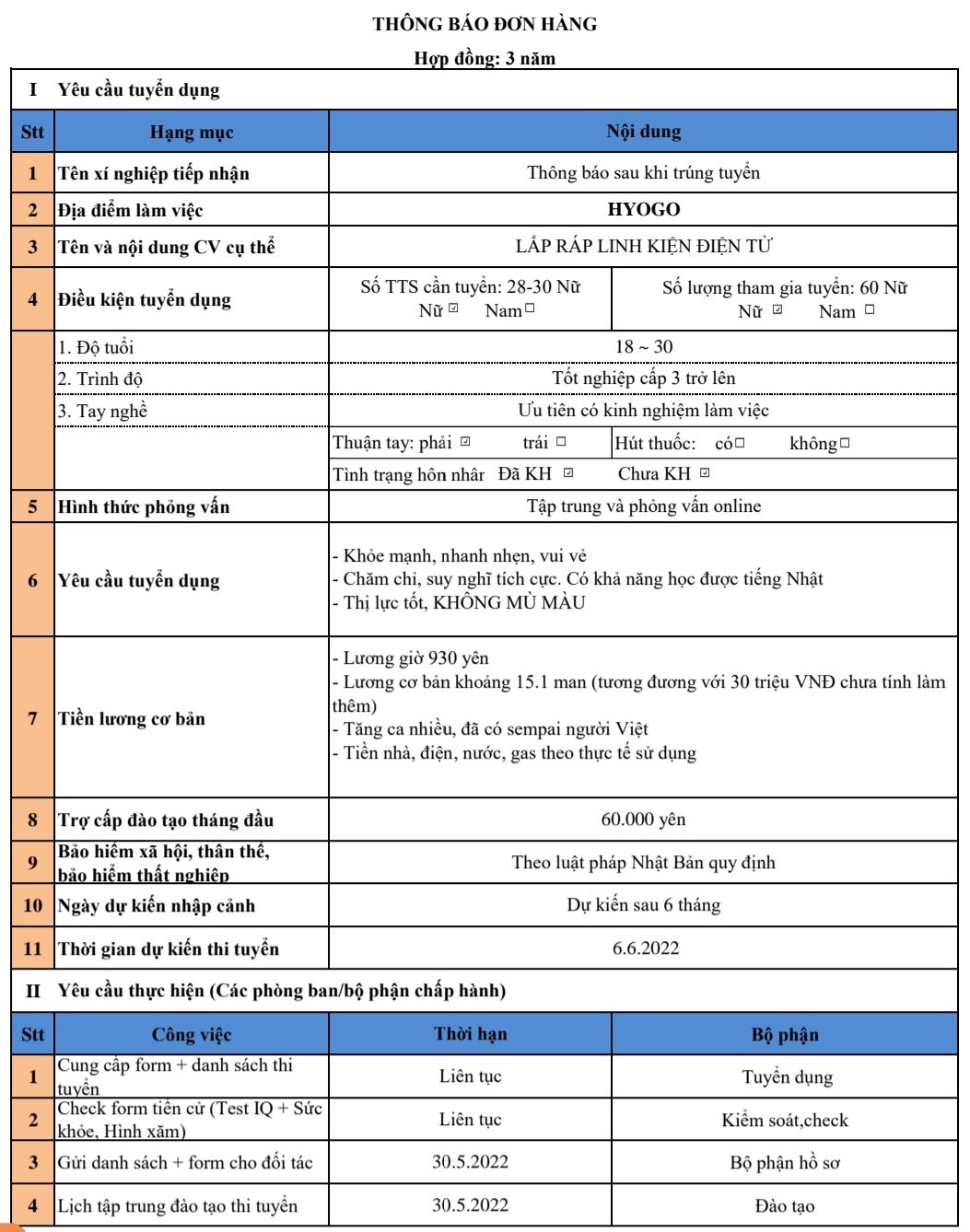 - Địa điểm làm việc: Tỉnh Hyogo - Kansai