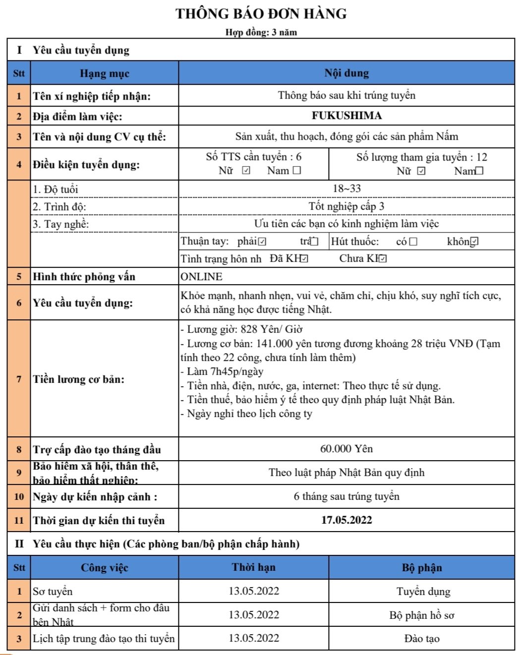 - Loại hình công việc: Chăm sóc, thu hoạch, đóng gói các sản phẩm nấm