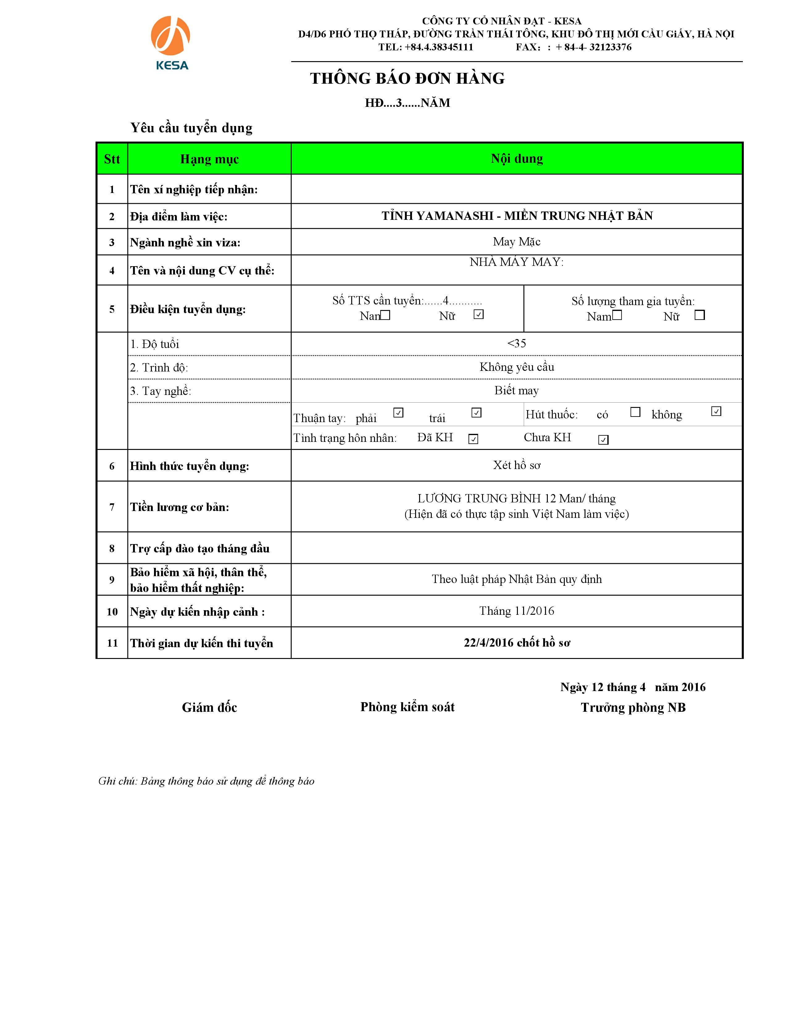 - Ngày dự kiến đăng ký: 22/04/2016